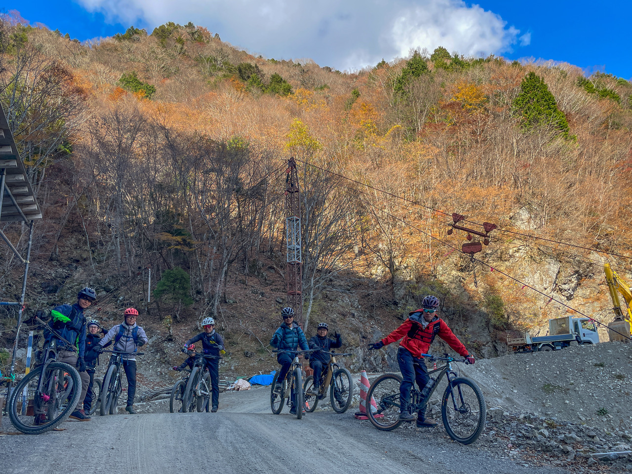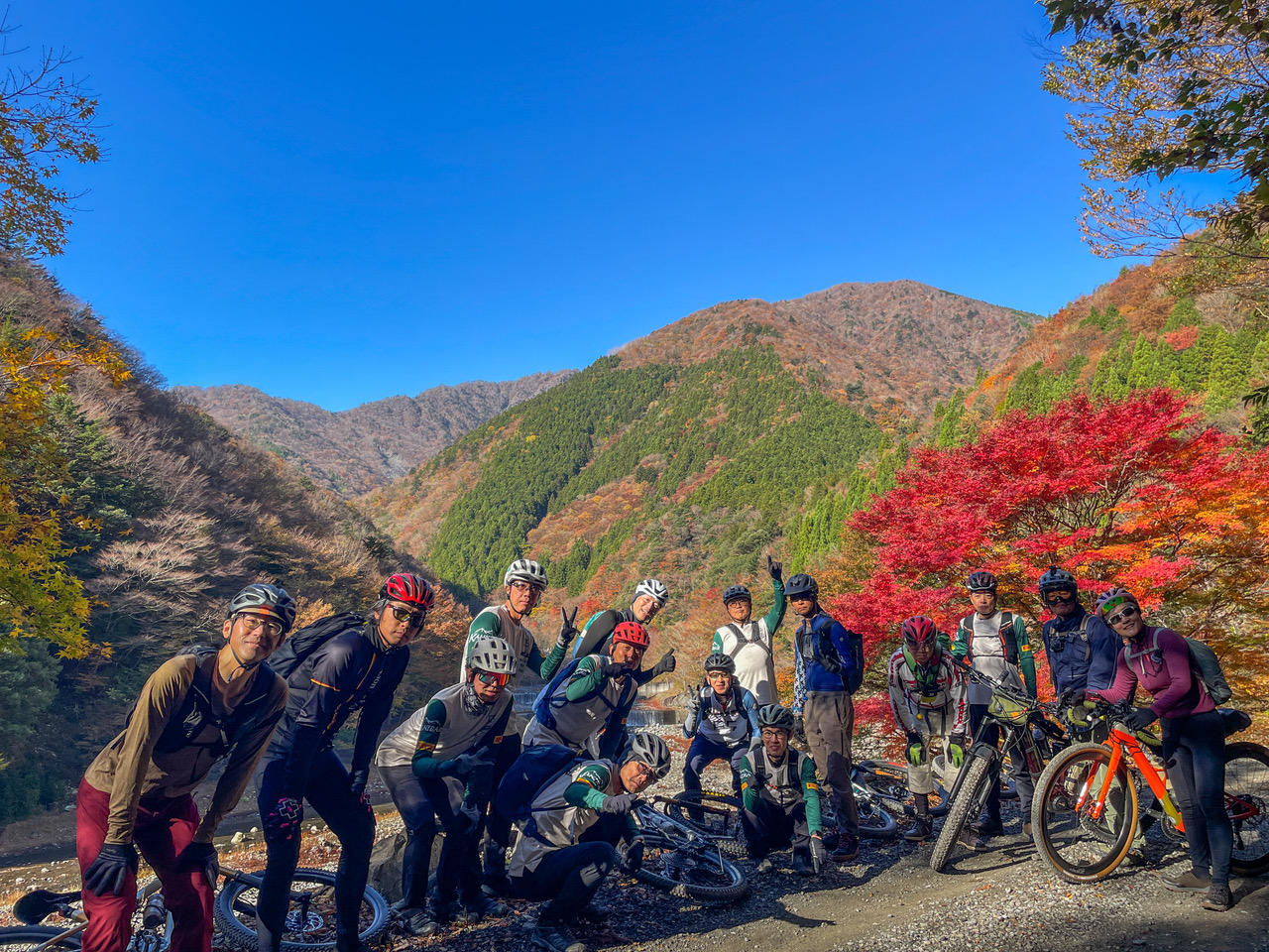 当店からも16名のオフロード好きが参戦し、紅葉が美しい高ノ瀬峡をスタートし山の家奥鎗戸を目指しました。