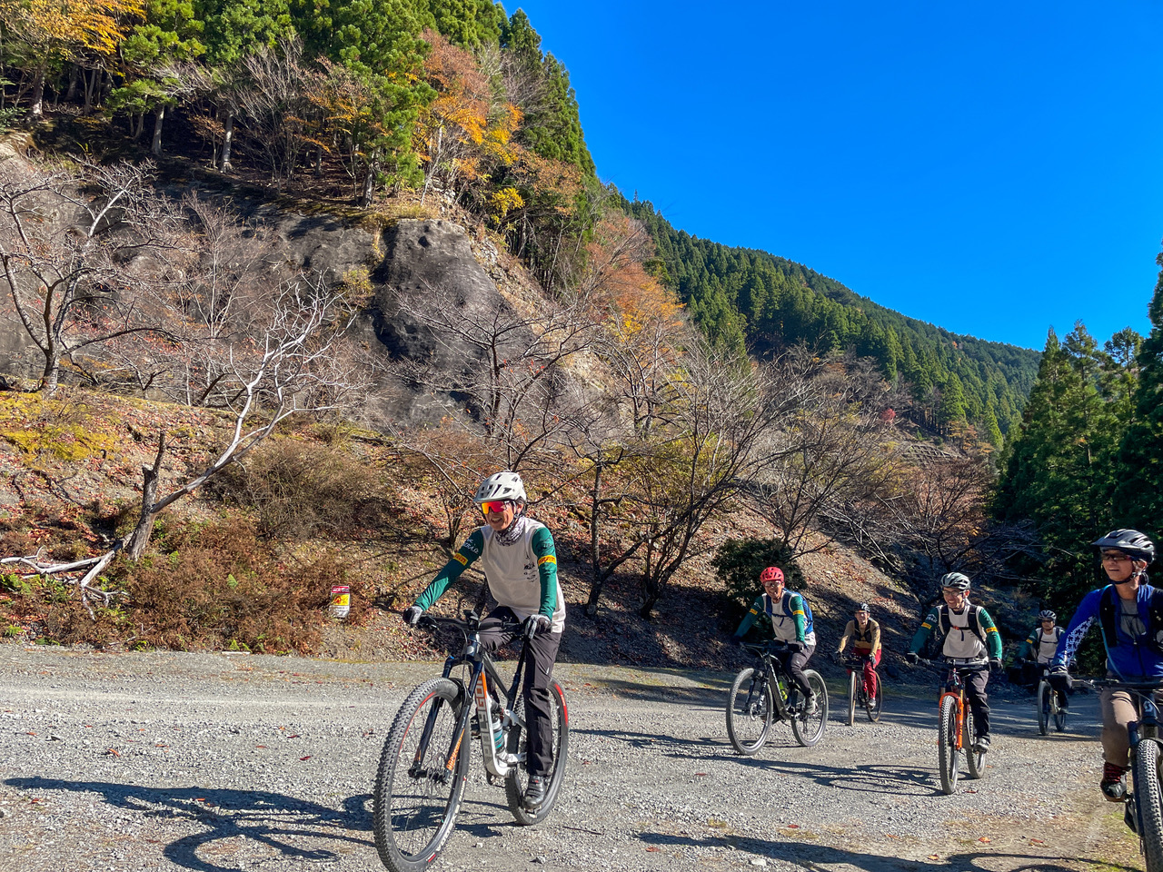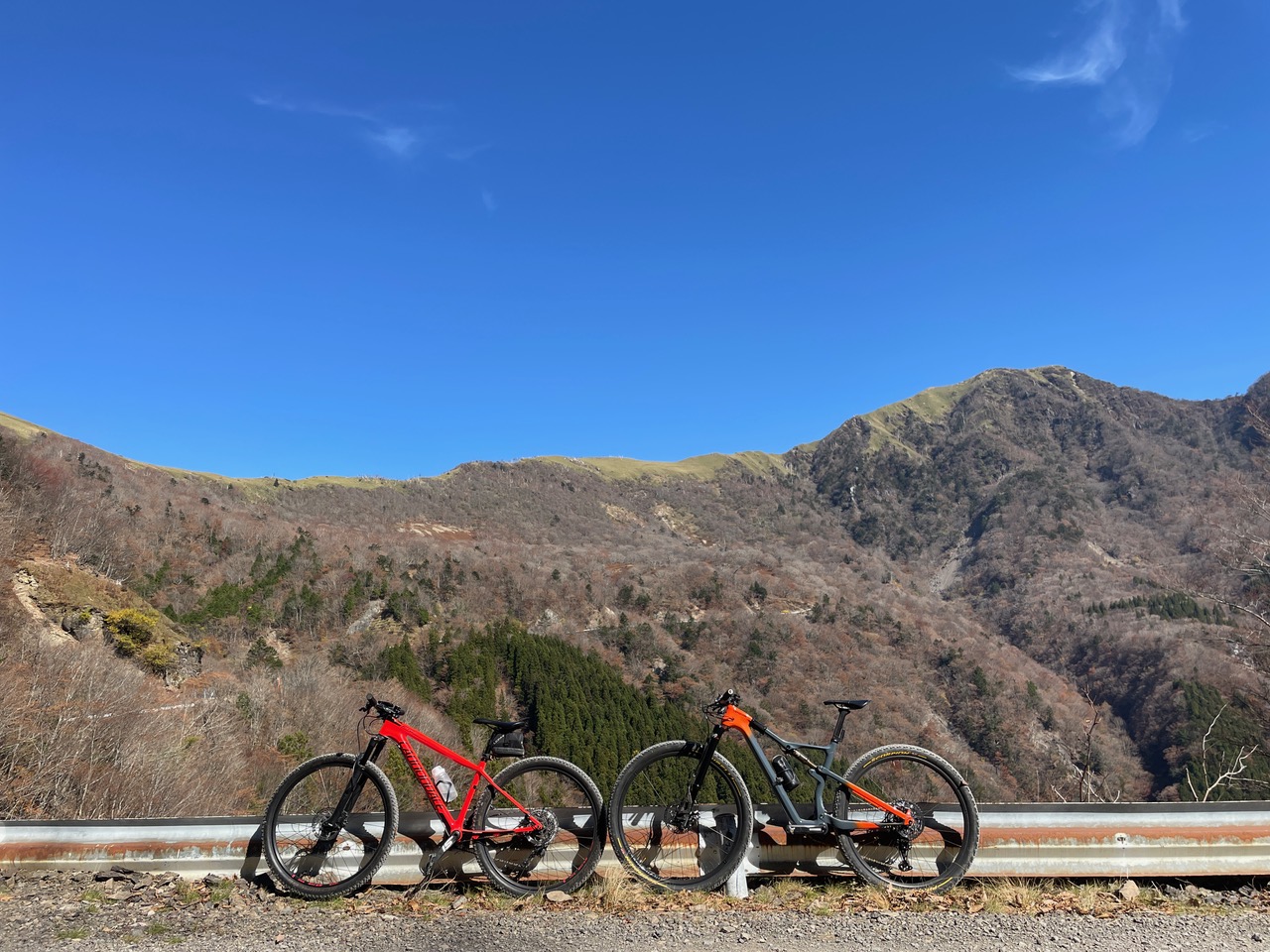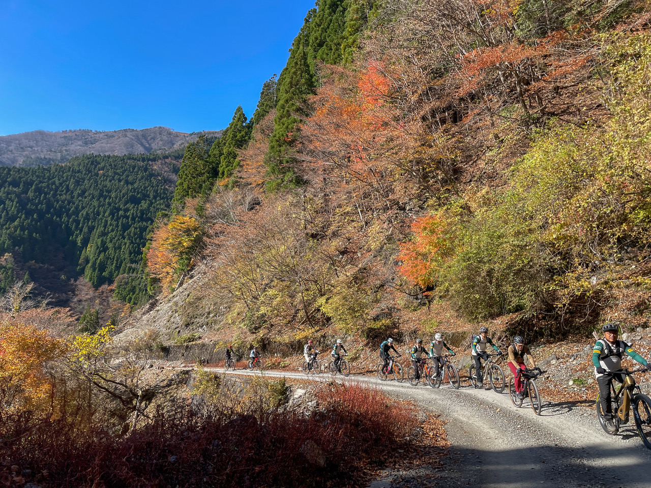 前半は勾配も緩く走りやすい中紅葉の撮影をしながら走行し、後半は少し勾配が上がりますが剣山系が続く絶景の稜線を眺めながら楽しく走行できました。