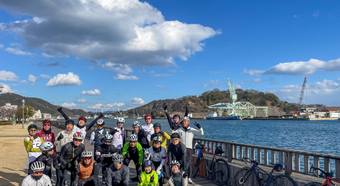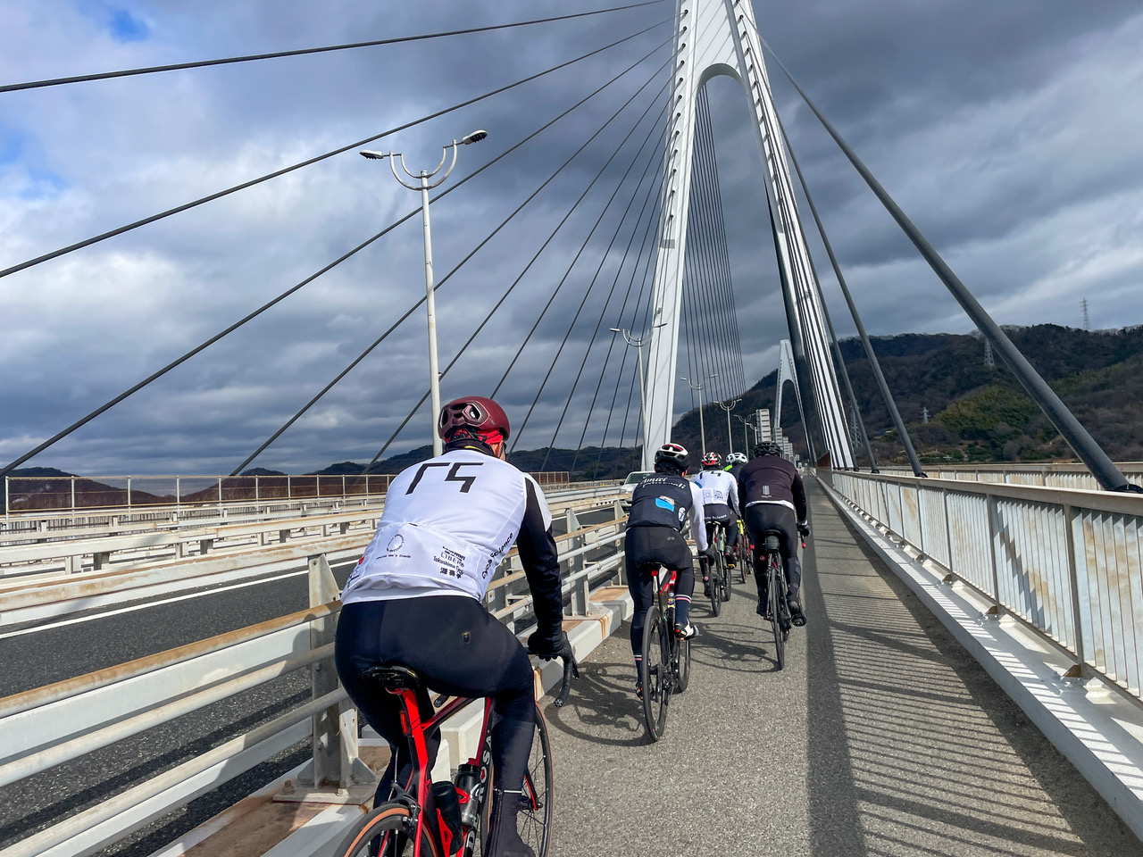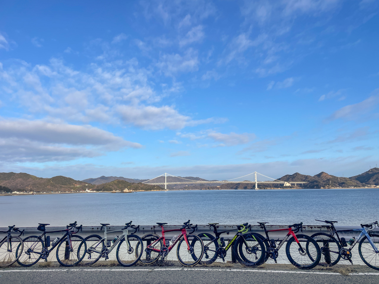 今回は因島からスタートし、生口島、向島のメインルートではなく外周をぐるっと回るコースでアップダウンの続く綺麗な海沿いの道を3グループに別れて楽しみながら尾道を目指しました!
